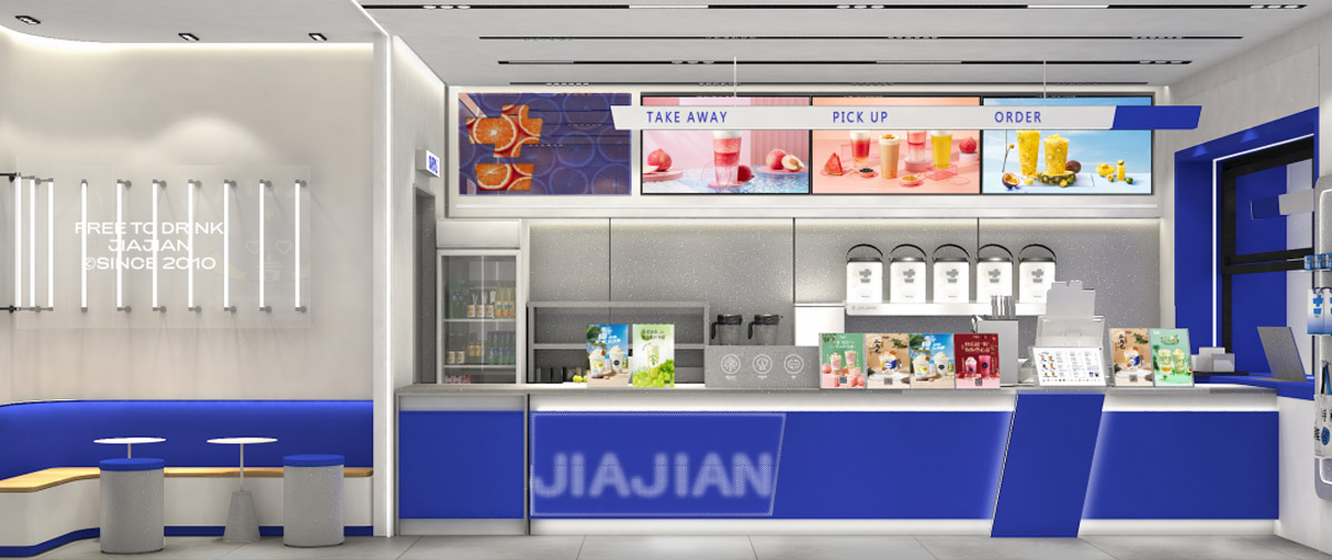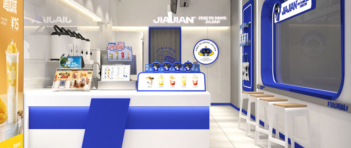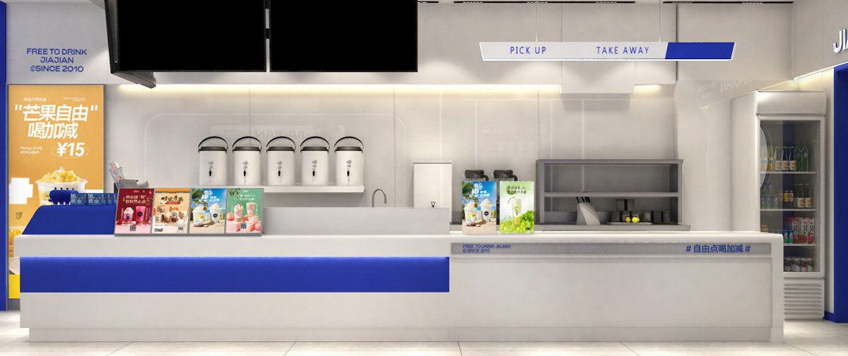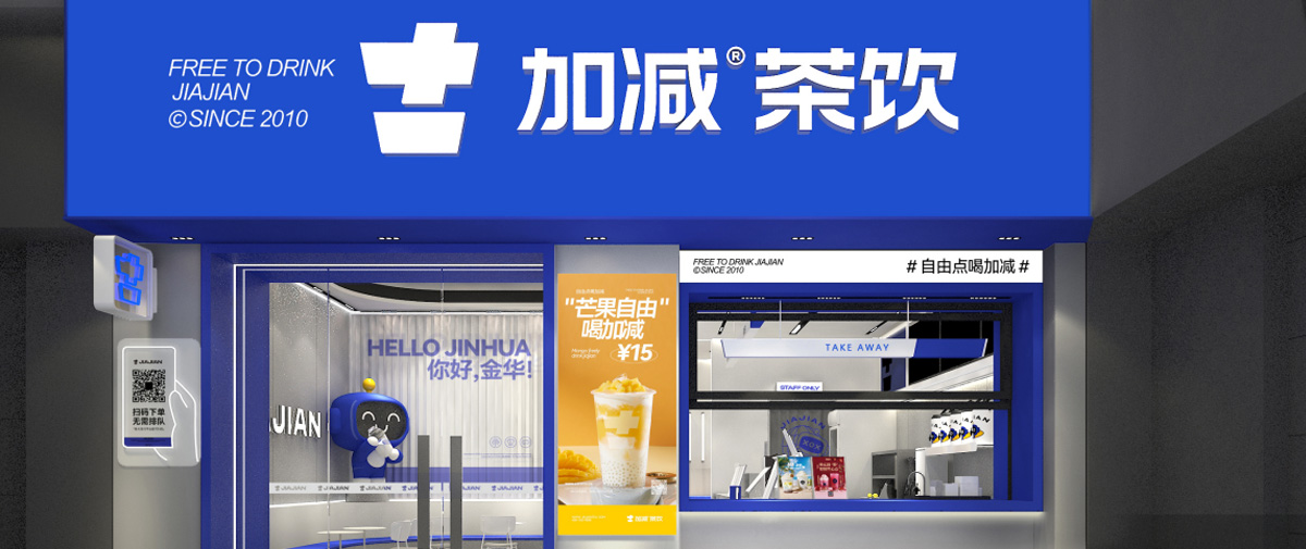 加减先后进行4次门店形象升级。全新第5代门店形象以简洁的设计风格及多样的装潢理念呈现新概念茶饮品牌风貌。